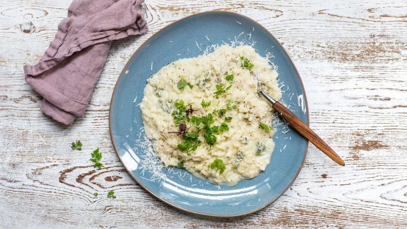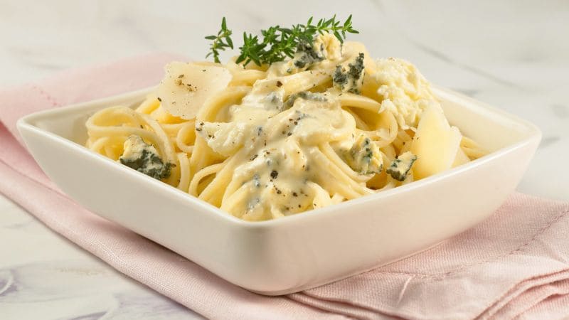 De fire ostene i denne oppskriften gir samlet en fyldig smak, og en herlig smaksopplevelse. Blåmuggost og parmesan setter en ekstra smak på denne superenkle middagsretten.