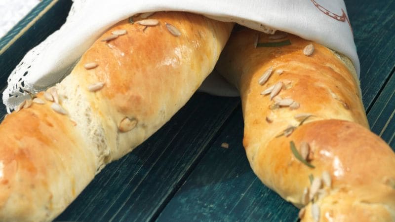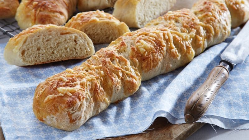 Dette er en oppskrift på lettbakte brød, som blir saftige med kesam i deigen. Osten gir god smak til brødet. Bagettene smaker kjempegodt til salat, supper, gryter og pasta. Denne oppskriften gir fire bagetter.