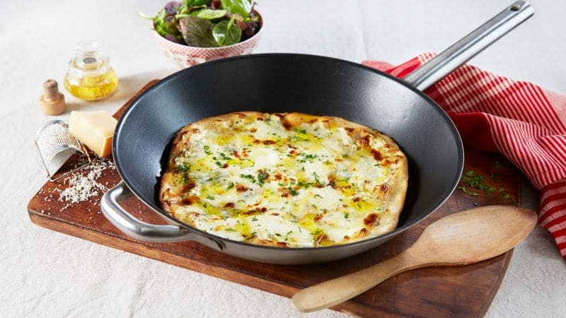 Italiensk pizza kan være kjappere å lage fra bunnen av enn frossenpizza. Her får du trikset som gjør det mulig å oppnå ekte steinovnspizza hjemme. Alt du trenger er en stekepanne som tåler å stå i stekeovnen.