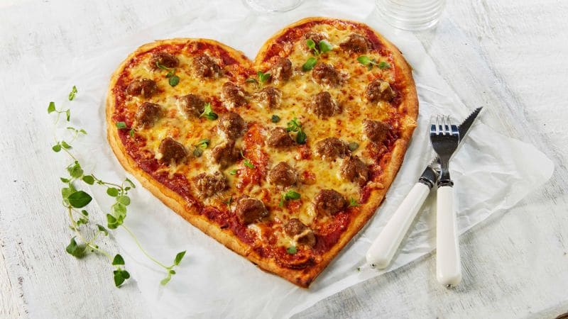 Dette er den perfekte pizza å servere på date eller Valentine's day. Overraske din kjære med hjertepizza med kjøttboller så blir det garantert en perfekt kveld.