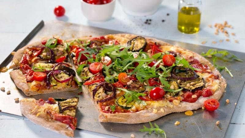 Oppskrift på herlig vegetar middagspai med stekte grønnsaker. Pesto og mozzarella setter deg i italiensk stemning. Pai passer fint å severe til både lunsj og middag, og når du får venner på besøk.