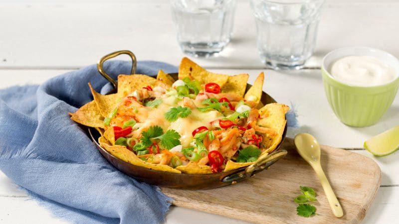 Prøv en ny vri på klassisk nachos. De salte tortillachipsene og den deilige osten passer overraskende godt med sursøt, asiatisk kylling. Denne retten kan lett erstatte den vanlige fredagstacoen.