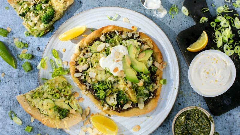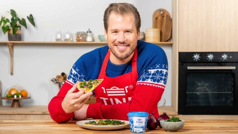 «Hvit pizza er alltid en vinner. Når jeg vil lage en litt sunnere variant, bruker jeg lett crème fraiche, grov bunn og topper med grønnsaker.» – Kjetil Jansrud