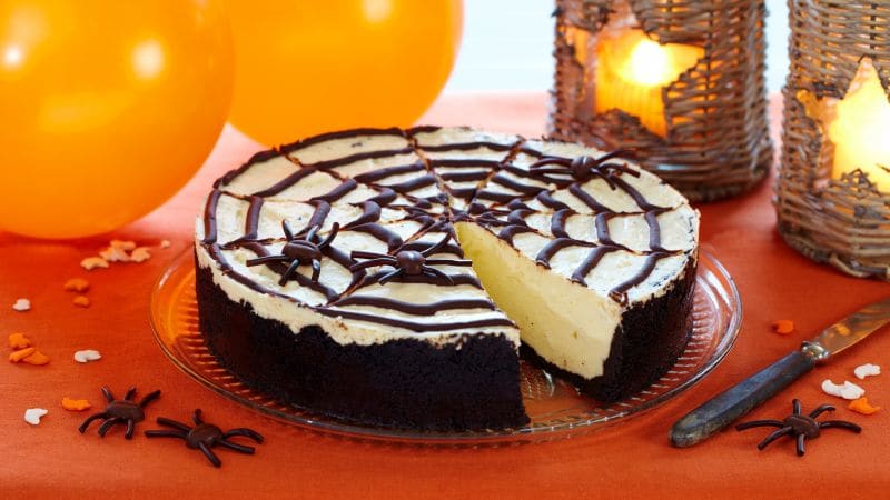 Det er gøy å kunne invitere til Halloween-fest! Her har vi laget en pyntet, festklar god ostekake til Halloween. Bunnen er laget med Dots sjokoladekjeks og ostekremen er syrlig og frisk med TINE Kremost. Kaken minner om den erke-amerikanske Oreokake. Ser den ikke skremmende lekker ut med spindelvev og edderkopper av mokkabønner og lakrislisser?