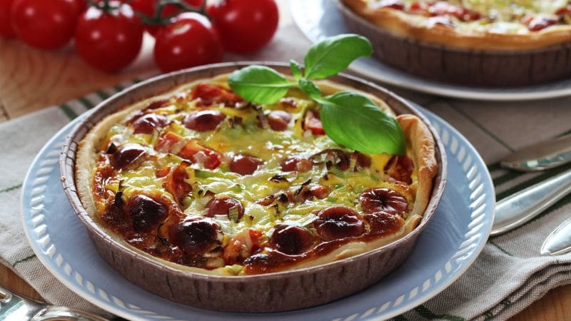 Lag små porsjonsformer eller en større pai av denne oppskriften. Velg gjerne en lagret ost med mye smak. Små pølser er ypperlig å legge i pai. Lag paibunnen selv, eller spar tid ved å bruke en ferdig bunn. Minipaiene er perfekte å servere på en vennekveld eller når familien er samlet.