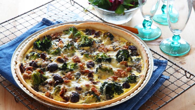 Nydelig vegetarpai med smak av blåmuggost, nøtter og brokkoli. Perfekt å severe når du har venner på besøk. Har du lite tid, bruk gjerne en ferdiglaget paibunn, eller lag paien fra bunnen om du ønsker det. Godt smaker det uansett!
