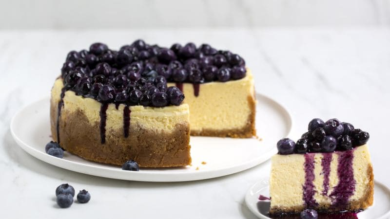 En stor og saftig ostekake med rømme, toppet med nyplukkede blåbær, går rett hjem. Nam! Kaken skal stå minst 5 timer i kjøleskapet så den får satt seg.
