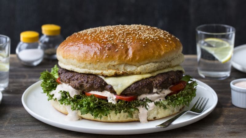 Kjenner du noen som elsker hamburger over all annen mat? Lag en kjempeburger som overraskelse. Denne giga-hamburgeren kan deles på fire sultne personer.
