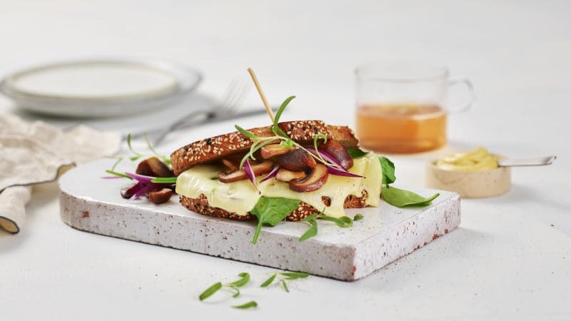 En skikkelig enkel og digg toast med Jarlsberg® Lettost, aromasopp og Dijonsennep. Noe som kan friste de fleste som ønsker å gjøre toasten litt fransk.