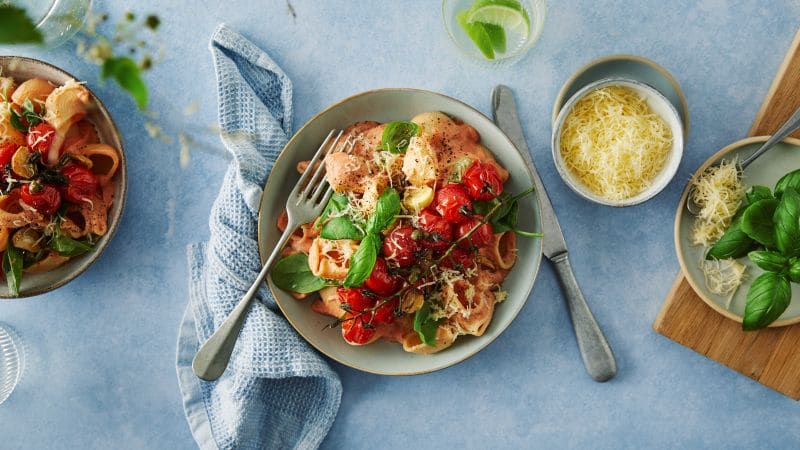 Lag en rask, enkel og smakfull vegetar-middag med pasta, hvitløk og pepperkremost. One pot lages i en og samme form, så det blir lite å vaske opp og mer tid til å nyte maten!