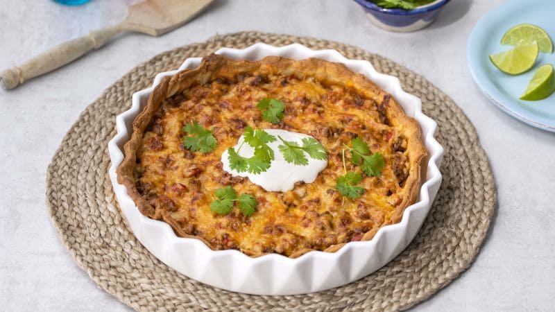 God og mettende pai med kjøttdeig. Paien passer godt når hele familien skal kose seg, enten det er til hverdags eller på lørdagskvelden. Hvis du ønsker å spare tid, kan du bruke ferdig paibunn.