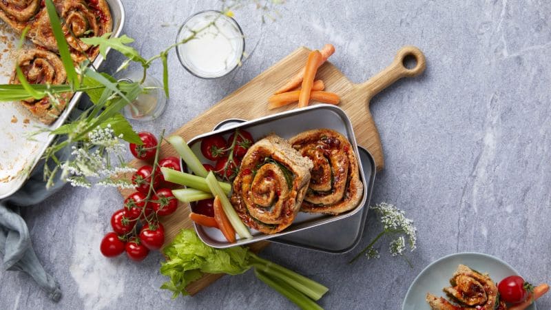Matpakkesnurrer er supert å ta med på skole og på jobb. Lag de med det fyllet du ønsker, men hold deigen grov slik at den metter godt. Her har vi laget en med tomatsaus, skinke og ost. Lag mange når du først baker og frys de ned så har du mange deilige overraskelser til matpakka.