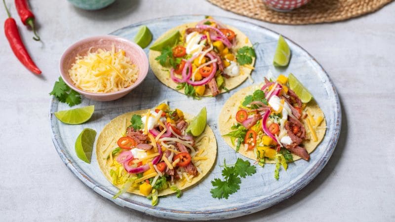 Quesadillas er stekte tortillalefser med ost og annet digg fyll. Denne oppskriften er laget i samarbeid med Bocuse d'Or-kokk Christian André Pettersen. Med ingredienser som gir den perfekte kombinasjonen av søtt og surt blir dette garantert den nye helgefavoritten!