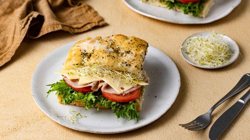 Dette smørbrødet skal være langt, akkurat som et surfebrett, Hawaiis nasjonale fremkomstmiddel. Du kan for eksempel bruke baguette, ciabatta eller lange skiver focaccia.